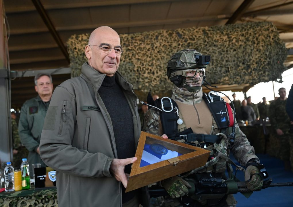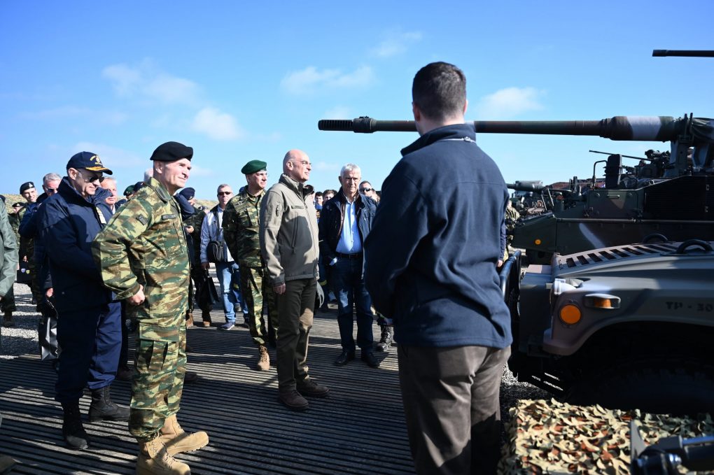 Ο Υπουργός Εθνικής Άμυνας Νίκος Δένδιας παρακολούθησε σήμερα, Παρασκευή 14 Νοεμβρίου 2025, την τελική φάση των Τακτικών Ασκήσεων Μετά Στρατευμάτων (ΤΑΜΣ) «Τακτική Χρησιμοποίηση ΣμηΕΑ – ΑΝΤΙΣμηΕΑ» και «Αίσιος Οιωνός 2025» στο Πεδίο Βολής και Ασκήσεων «Αετός» στον Έβρο.